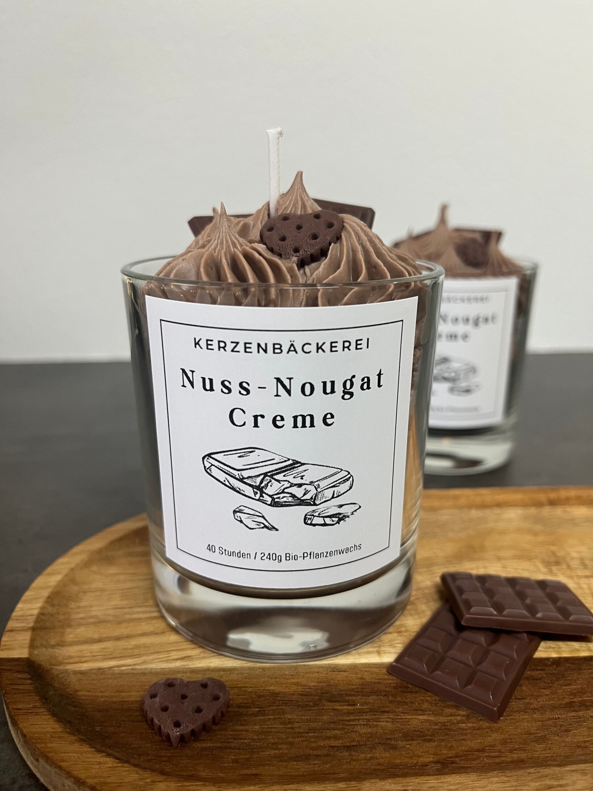 Die Nuss-Nougat Duftkerze vereint den unwiderstehlichen Duft von gerösteten Haselnüssen und cremiger Schokolade zu einer warmen, sinnlichen Duftverführung.