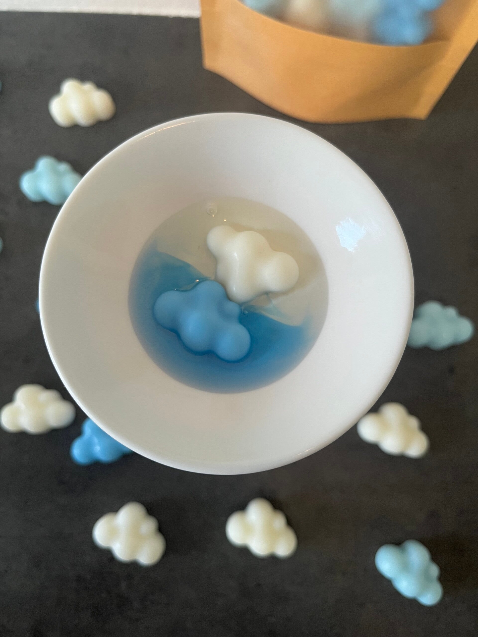 Die Duftwachs-Wolken kommen in drei zarten Farben und sind in einer edlen Papierverpackung mit Sichtfenster verpackt – perfekt auch als Geschenk.